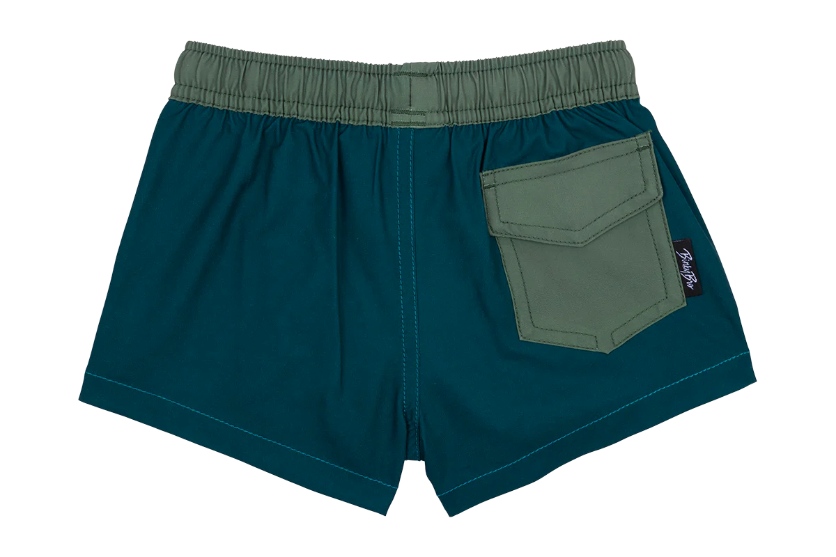 Our Swimmies are styled after a more euro-fit. Meaning, the length of the shorts will land anywhere between a little above the knee to mid-thigh-ish (depending on the length of the child). It is designed this way--its our style!