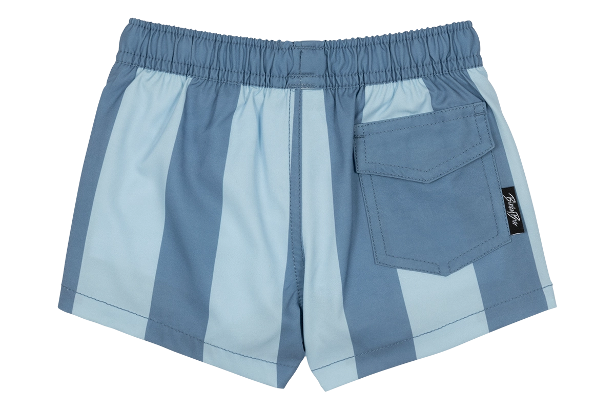 Our Swimmies are styled after a more euro-fit. Meaning, the length of the shorts will land anywhere between a little above the knee to mid-thigh-ish (depending on the length of the child). It is designed this way--its our style!