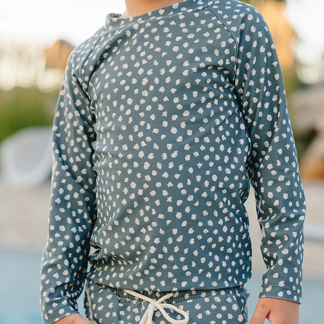 Our wide neck design allows for easy on and off, encouraging little hands to Our 4-way stretch and reinforced seams ensure this rashguard will hold up to the toughest adventures and last for years. Gender neutral in design, these are designed to fit at the higher end of the sizing to ensure longer wear for your little ones.