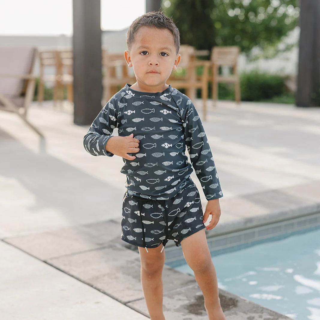 Our wide neck design allows for easy on and off, encouraging little hands to Our 4-way stretch and reinforced seams ensure this rashguard will hold up to the toughest adventures and last for years. Gender neutral in design, these are designed to fit at the higher end of the sizing to ensure longer wear for your little ones.