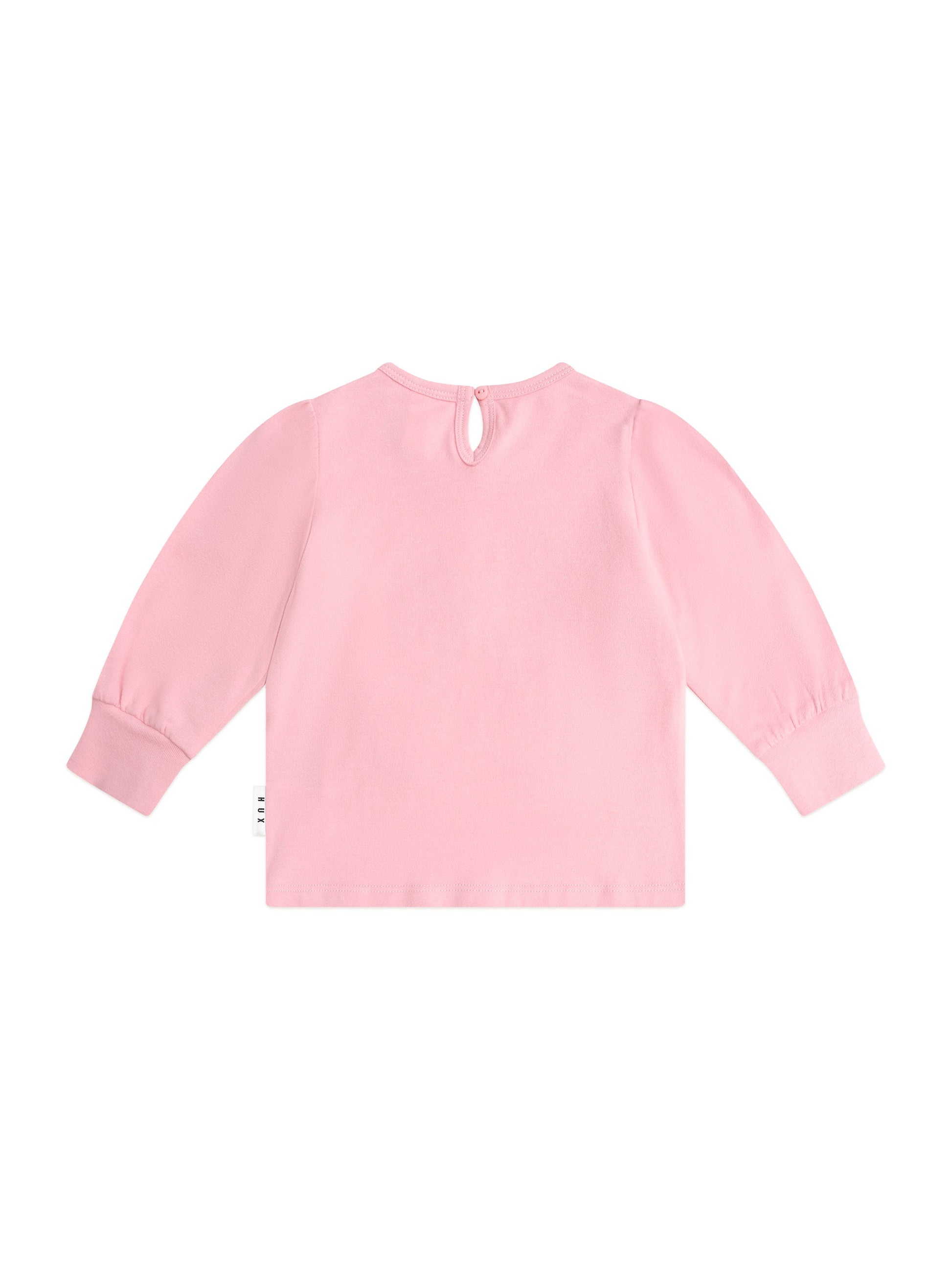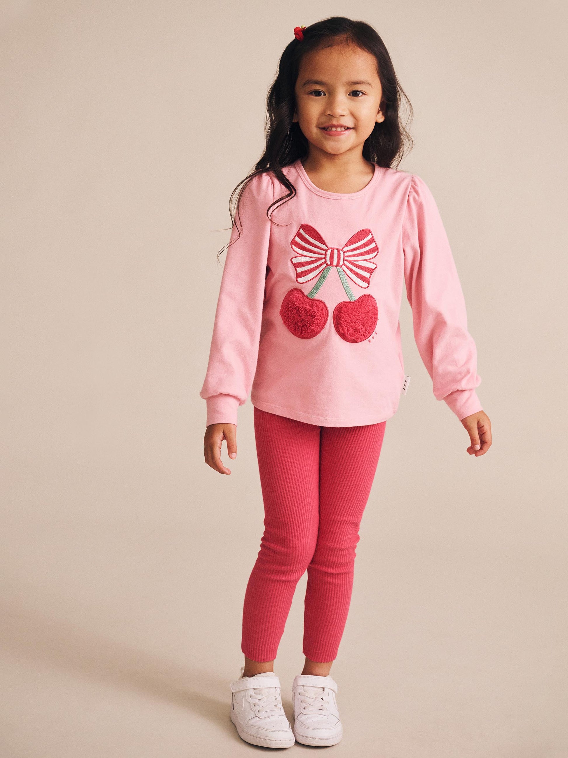 Her soon-to-be new favourite puff sleeve top. It's made from cloud-like organic cotton in an apricot hue and features a furry cherry pie embroidery on the tummy.