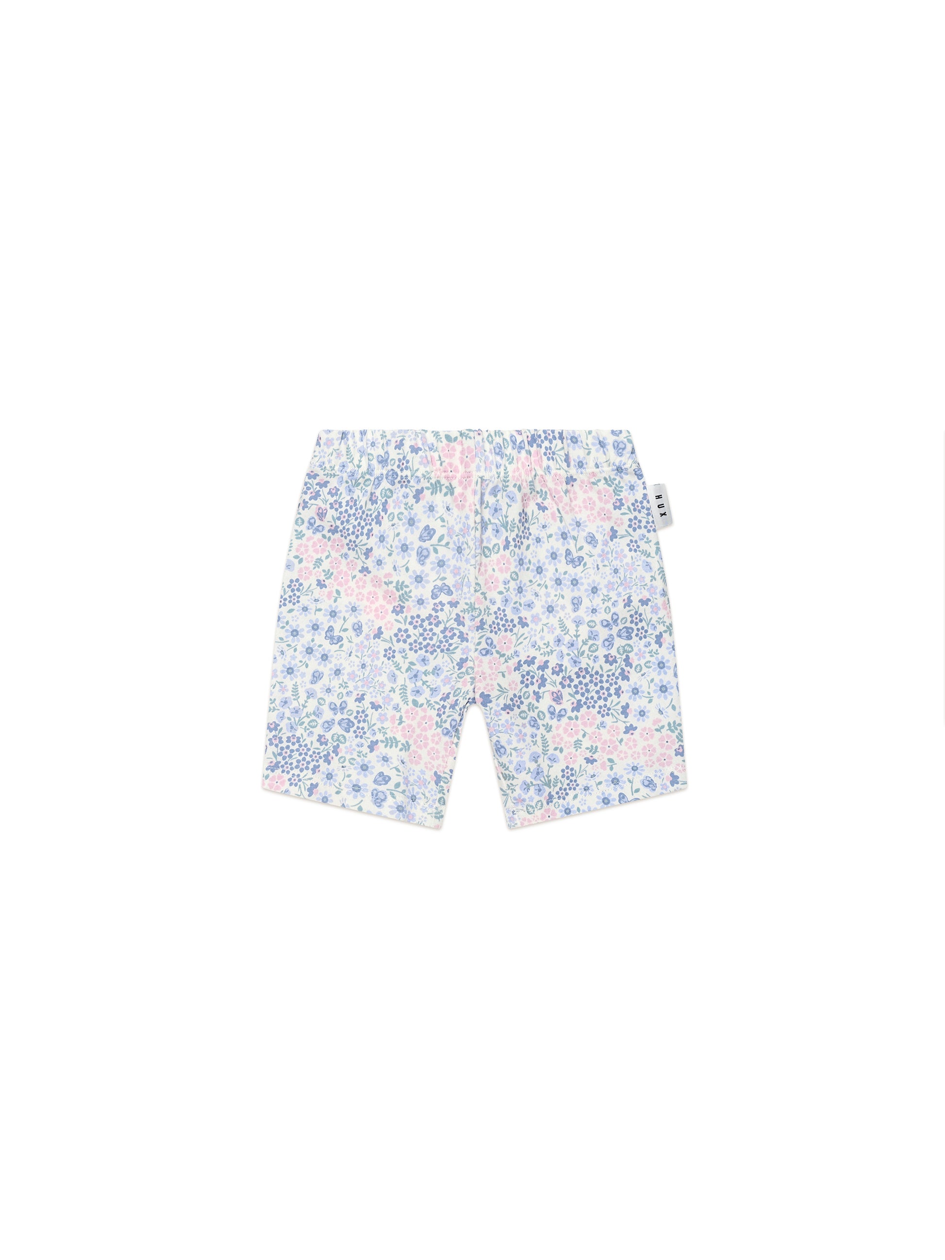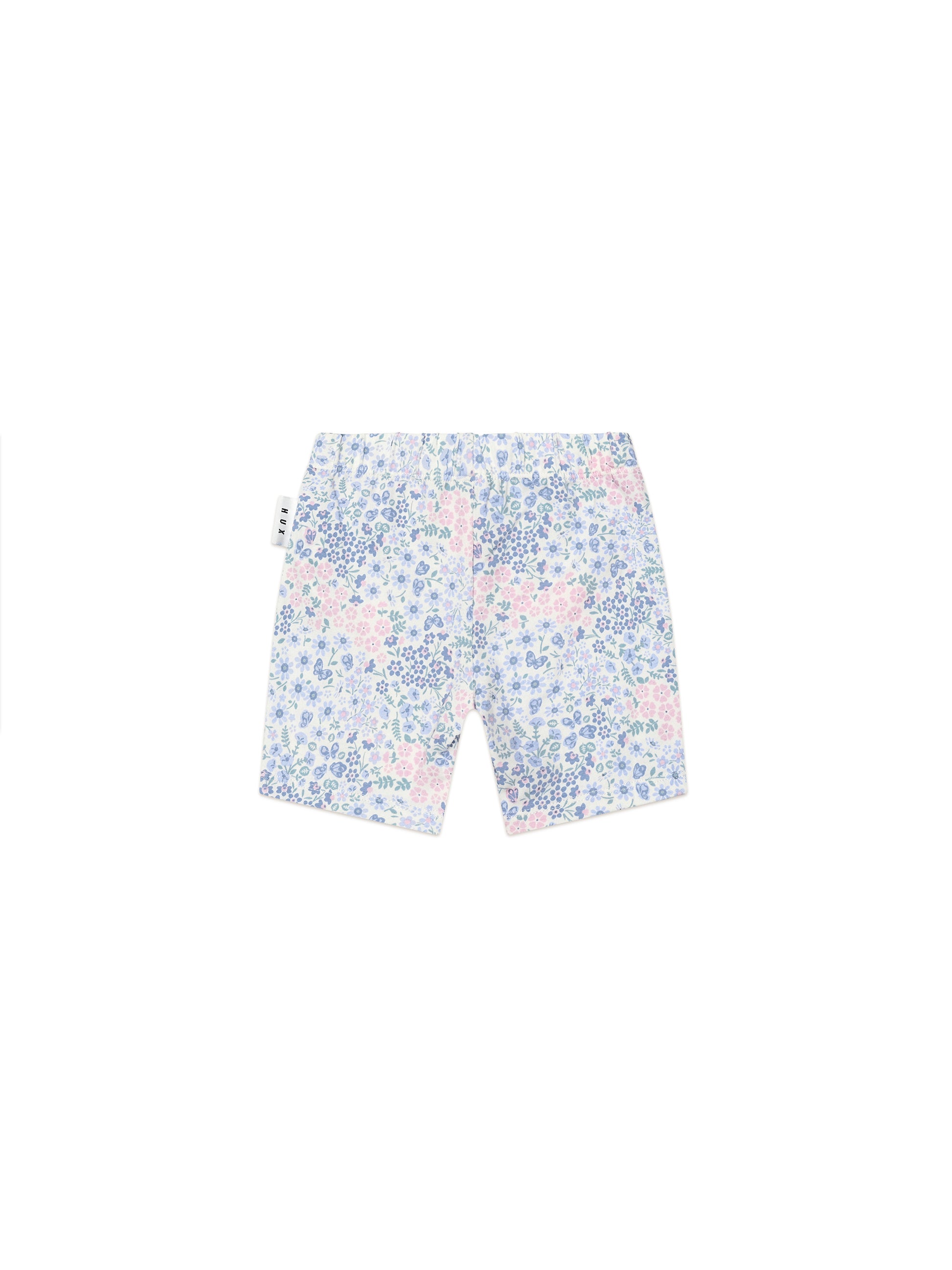 This soft and stretchy pair of bike shorts are made from soft organic cotton jersey in our custom flower print. The gentle waistband keeps pants put and feels comfy on tiny tummies all day long.