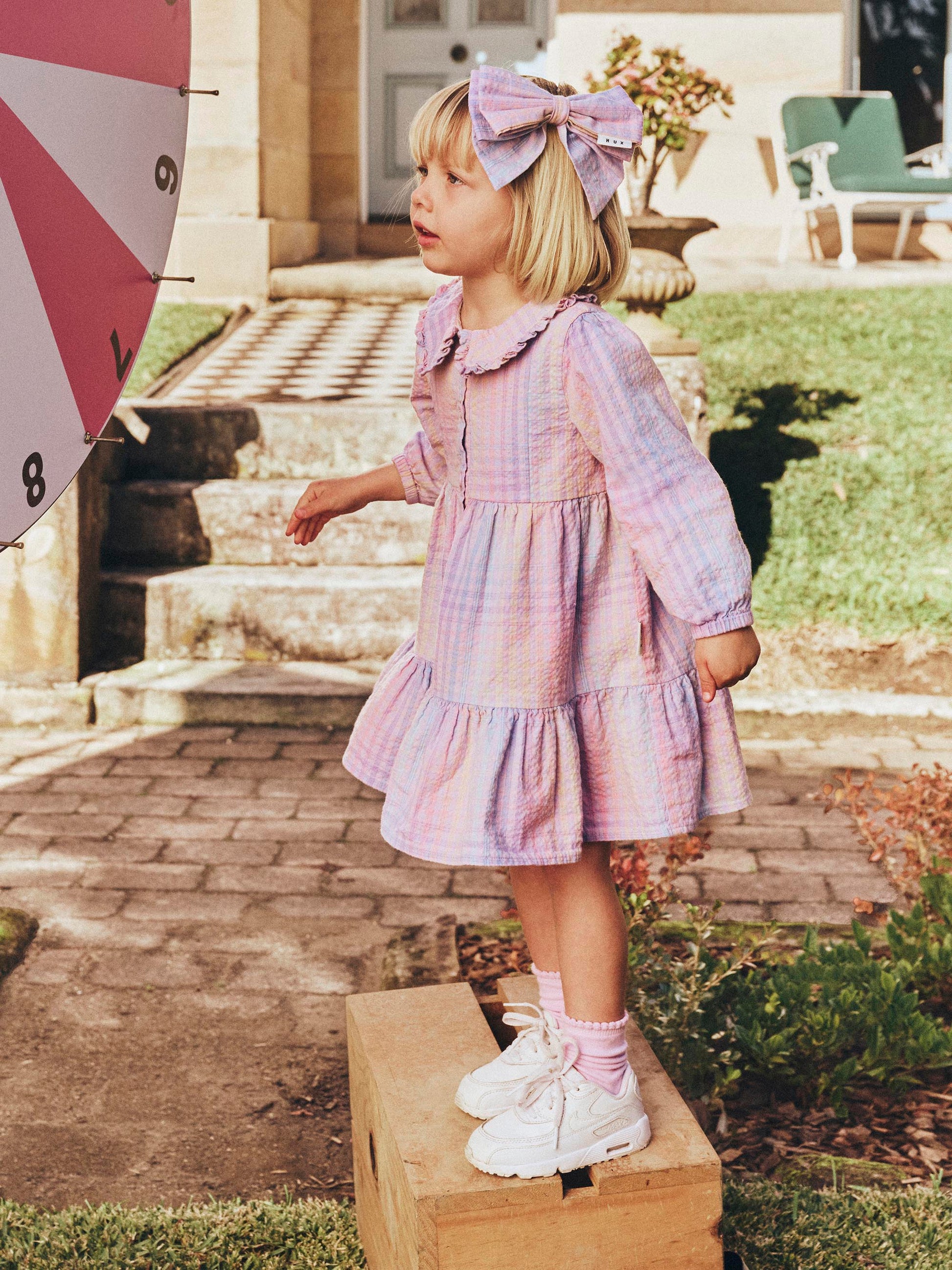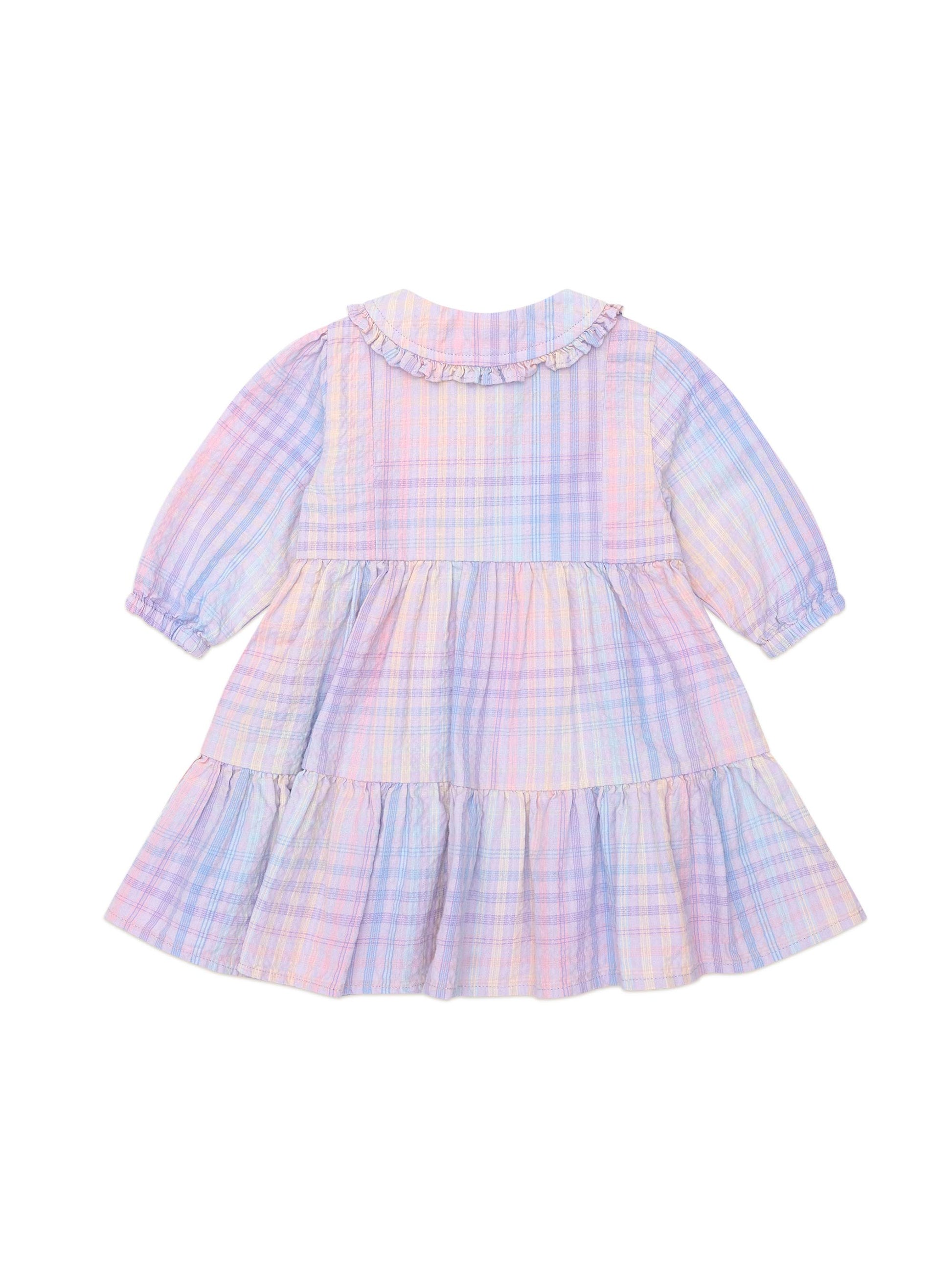Hux baby Rainbow Check Long Sleeve Frill Dress