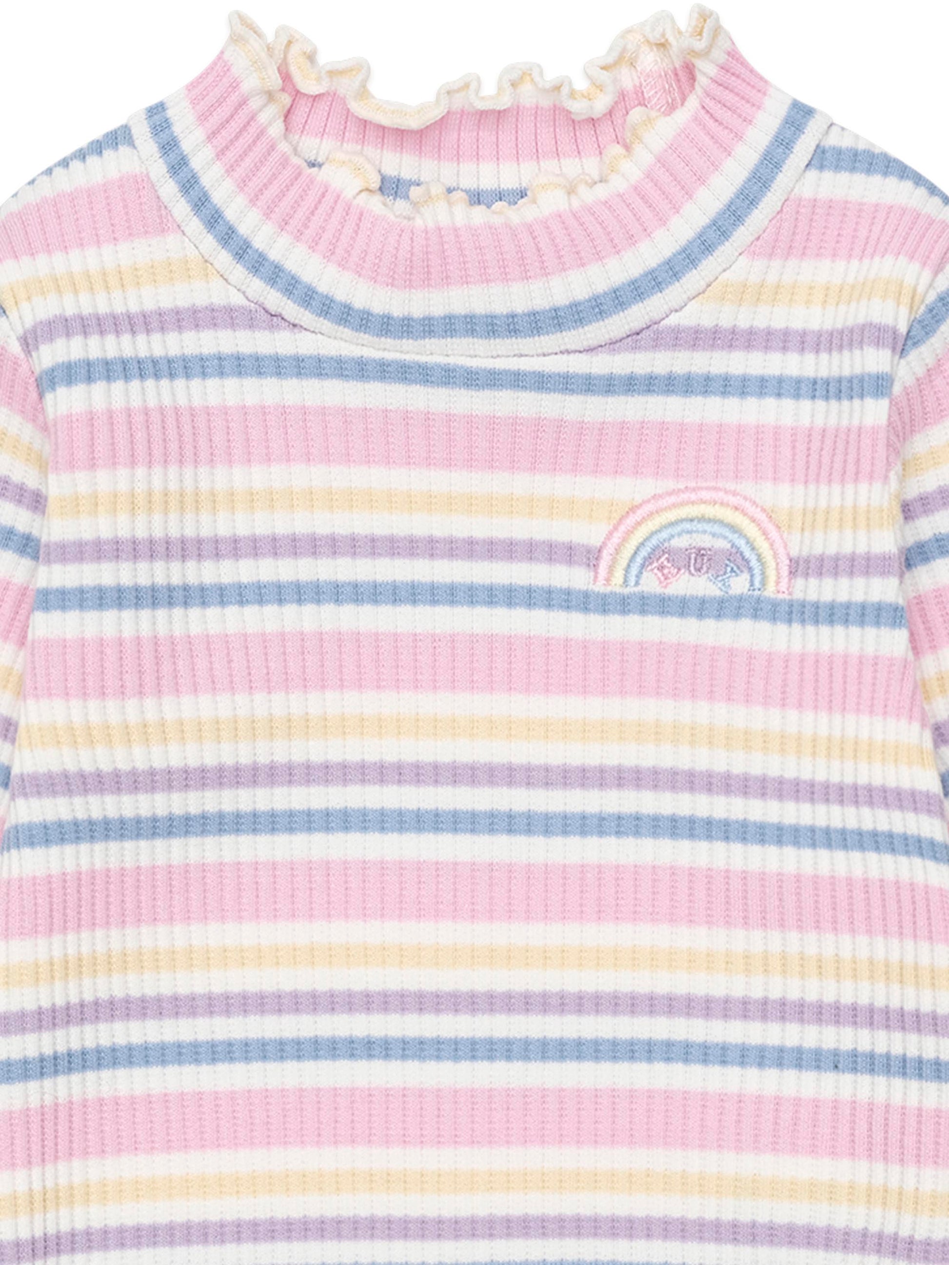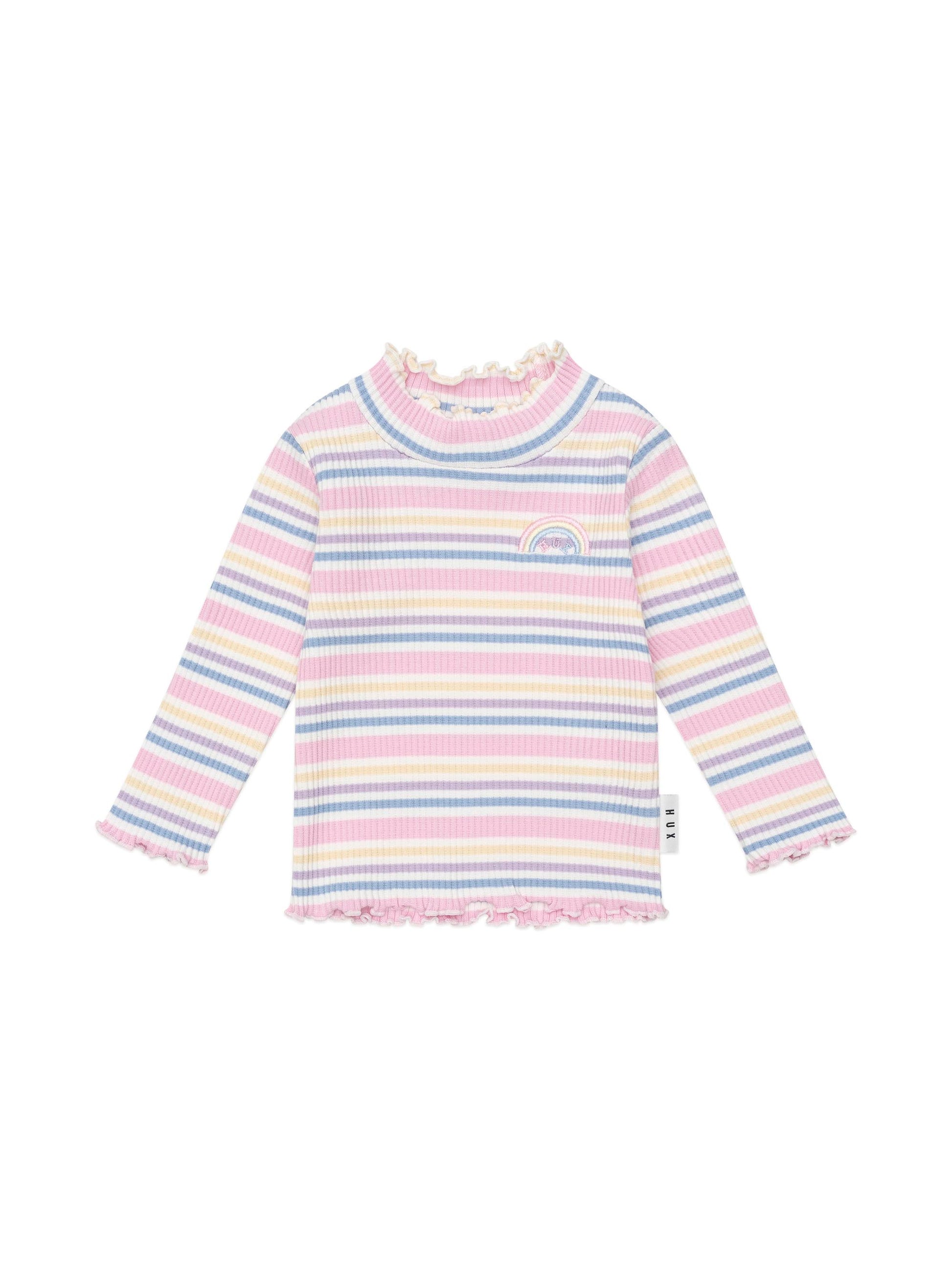 A versatile layering piece in all the colours of the rainbow. This long-sleeved top is made from extra thick ribbed cotton to keep little bodies warm and features a sweet lettuce edge detail to complete the look. A true wardrobe essential.