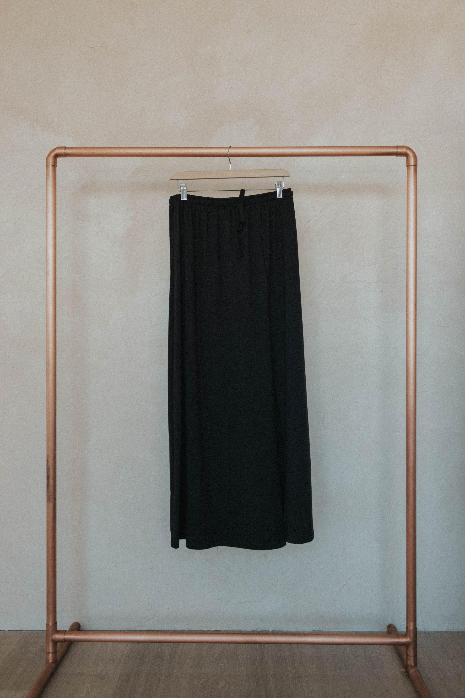 We have a brand new skirt for fall! This relaxed fit maxi skirt features a front slit and drawstring adjustable waist. You can dress this one up or down!