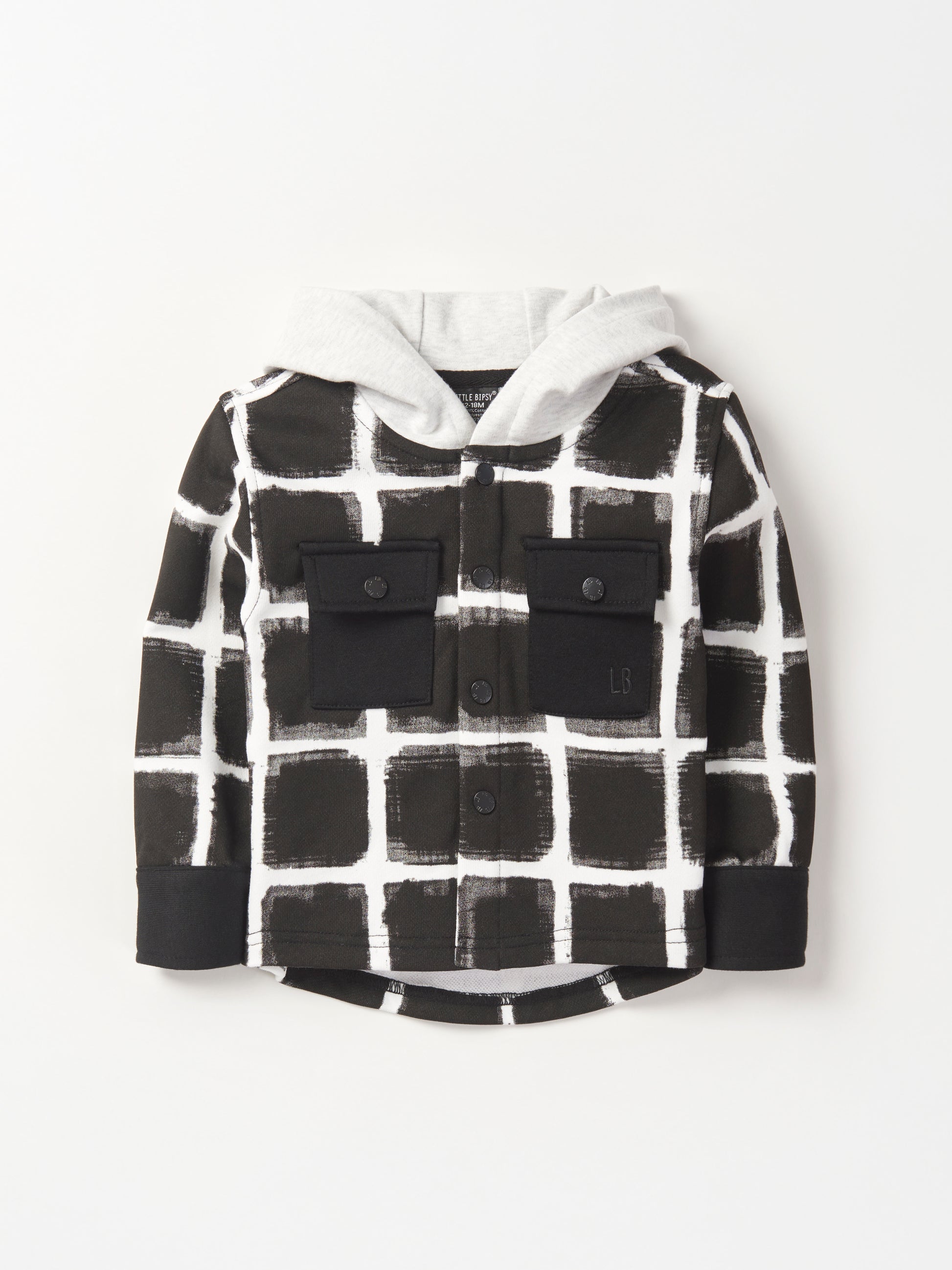 A perfect blend of style and comfort, the Checkered Hooded Shacket is a must-have layering piece for all year round. Crafted in a sleek black and white brushed checkered pattern, this versatile shacket features an attached hood for added warmth and flair. With two functional front pockets, your little one can easily stash their essentials while looking effortlessly cool. The “LB” branded buttons provide a subtle, yet stylish detail, while the signature LB embroidery adds a touch of sophistication.
