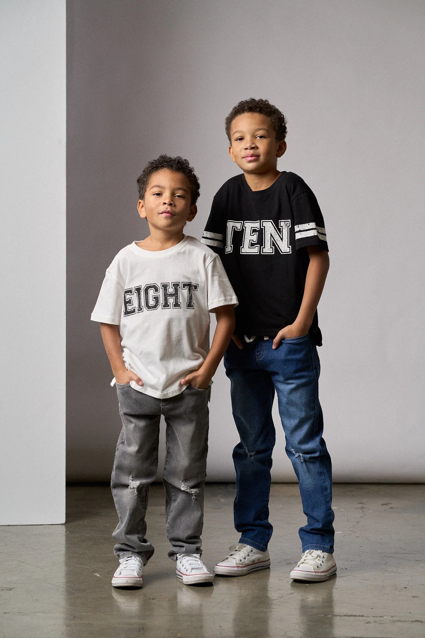 Celebrate your little one’s special day in style with our Birthday Tees in classic black and white! These fun, high-quality shirts with a bold number on the front and back are the perfect way to mark any birthday milestone. Made from soft, breathable cotton, they offer all-day comfort for your birthday boy or girl. Whether you're planning a party or just looking to make their big day extra special, these tees are the perfect addition to the celebration. Easy to pair with jeans, shorts, or skirts, they’re a timeless choice for every birthday!