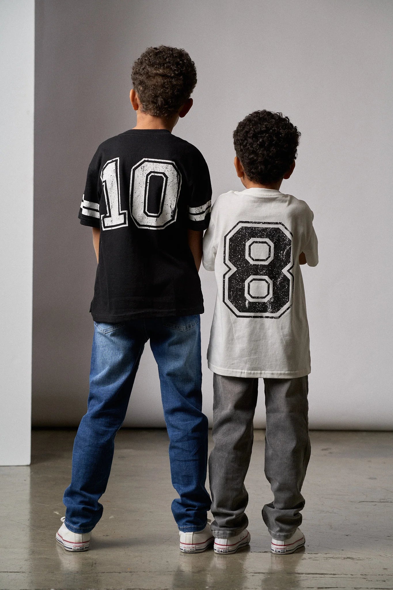 Celebrate your little one’s special day in style with our Birthday Tees in classic black and white! These fun, high-quality shirts with a bold number on the front and back are the perfect way to mark any birthday milestone. Made from soft, breathable cotton, they offer all-day comfort for your birthday boy or girl. Whether you're planning a party or just looking to make their big day extra special, these tees are the perfect addition to the celebration. Easy to pair with jeans, shorts, or skirts, they’re a timeless choice for every birthday!