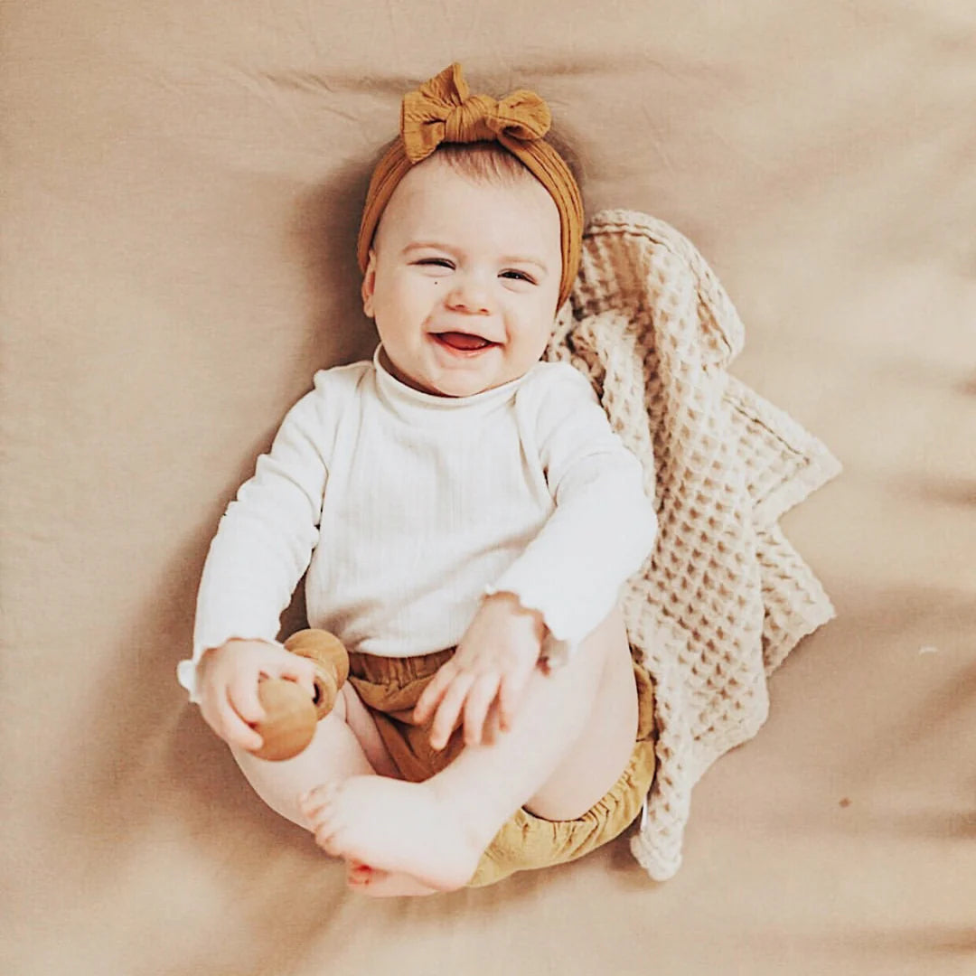The cable knit headwraps are adorable with any outfit, not to mention the softest fabric against your babes head. Keep your little one stylish and comfy in this neutral classic headwrap. Made from super soft, extra stretchy material that is one size fits all. This style does not come un-done and is one full piece as the bow is secured. We know these will be your new favourite headbands!