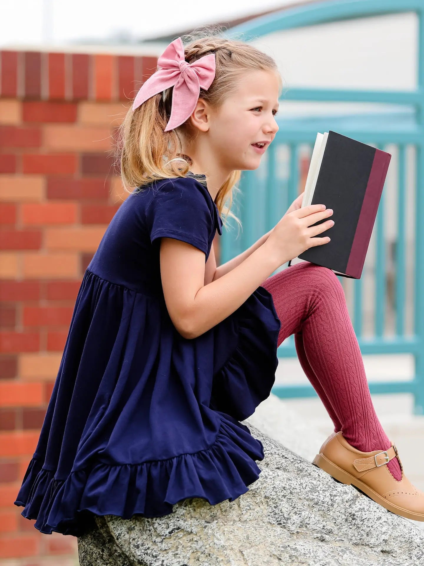 Little Stocking Co. cable knit tights are perfect for all occasions! We love them dressed up with dresses and skirts or dressed down beneath a pair of denim shorts for a playful, edgy look! Our cable knit stockings are stretchy which makes them extremely comfortable and also allows them to fit a wide range of children.