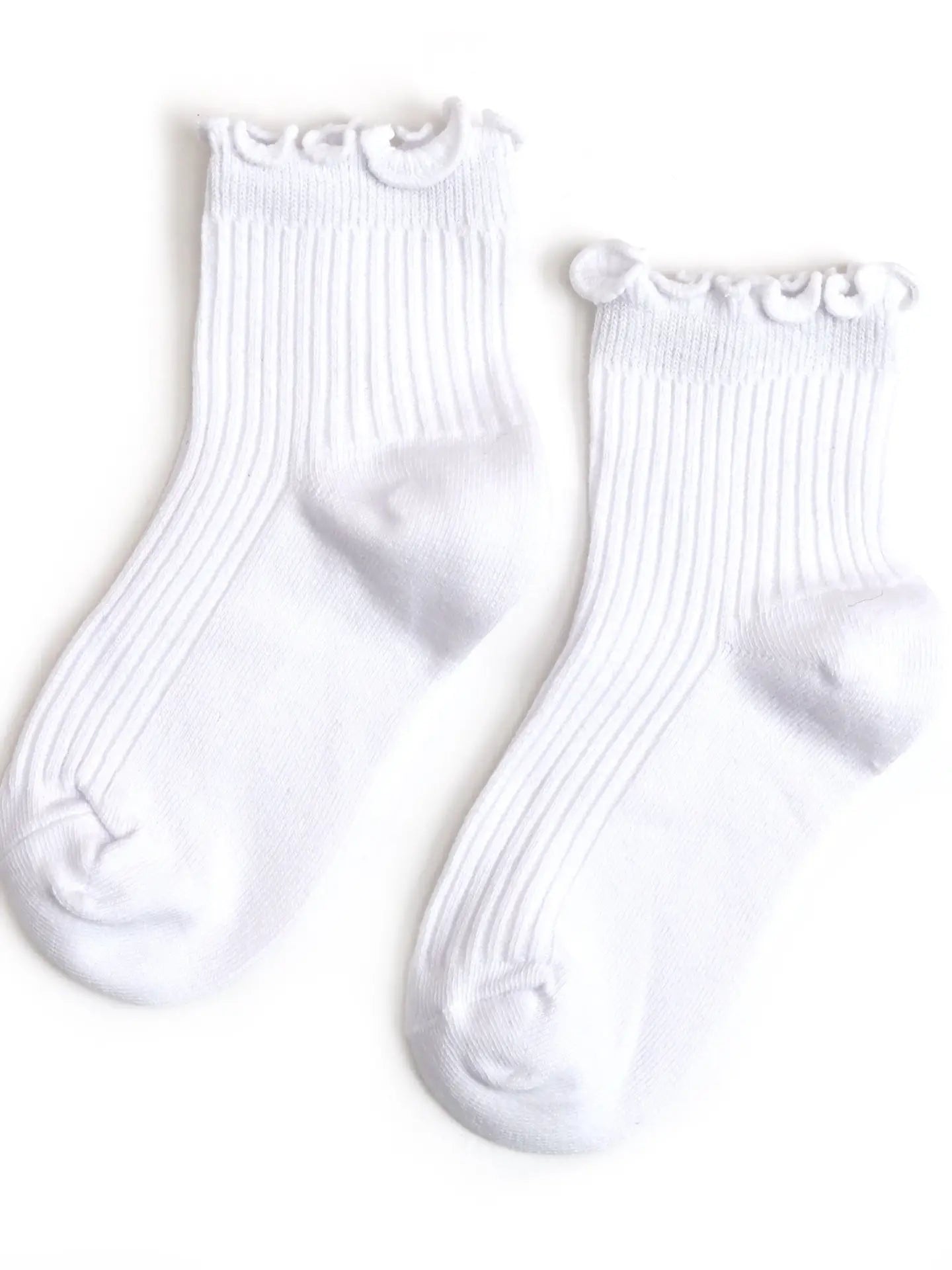 Little Stocking Co. Ribbed Lettuce Trim Midi Socks || Ivory