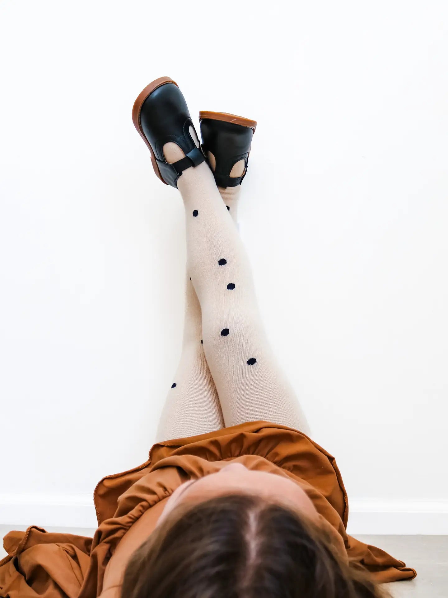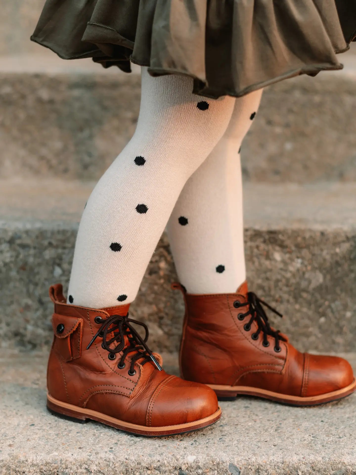 Vanilla Dot Knit Tights for babies, toddlers and children! Classic. Cute. Durable. And now better than ever! Our cable knit tights are now made with a higher quality yarn that is even softer and more durable than before!