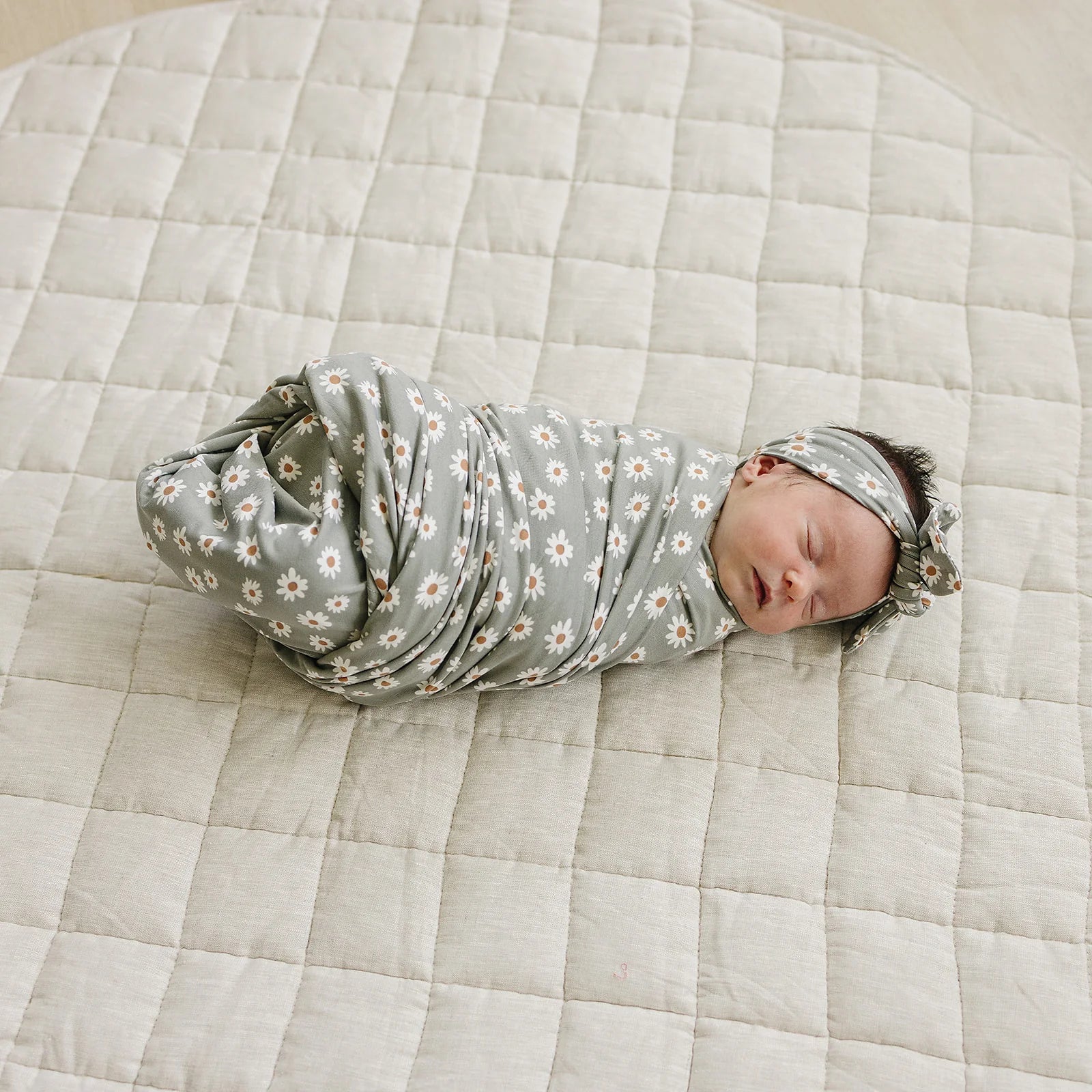 Mebie Baby Bamboo Head Wrap || Light Green Daisy