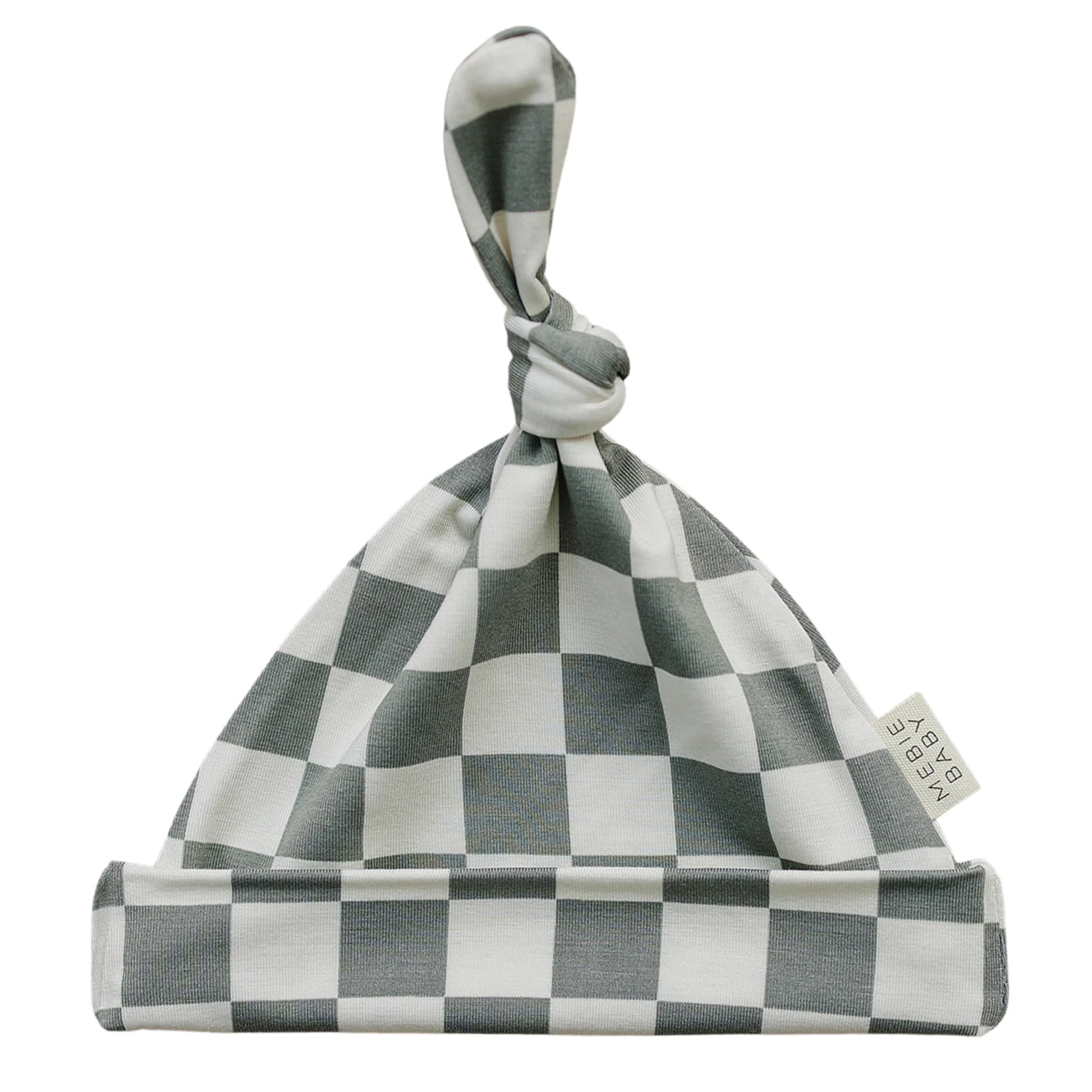 Mebie Baby Light Green Checkered Bamboo Newborn Knot Hat