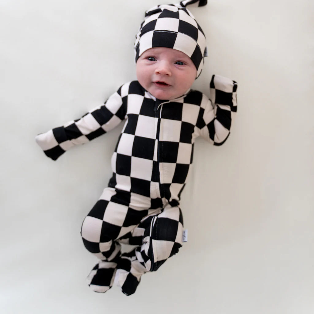Pip + Phee Bamboo Footie || Cream + Black Checks