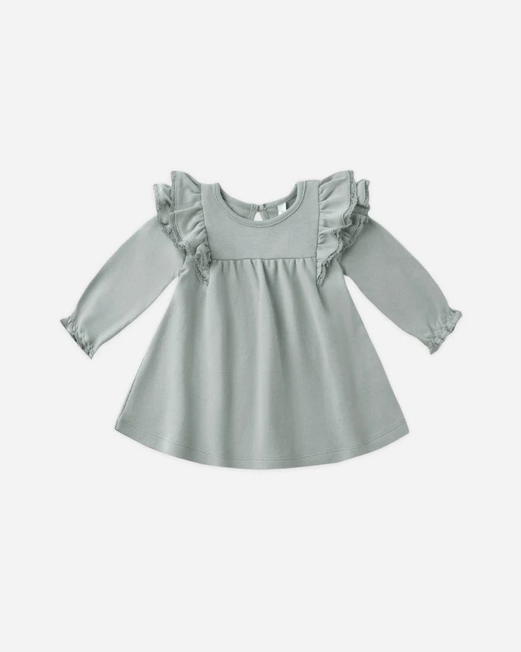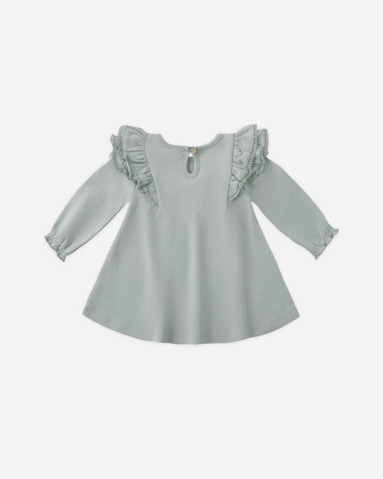 Quincy Mae Long Sleeve Flutter Dress || Blue Steel