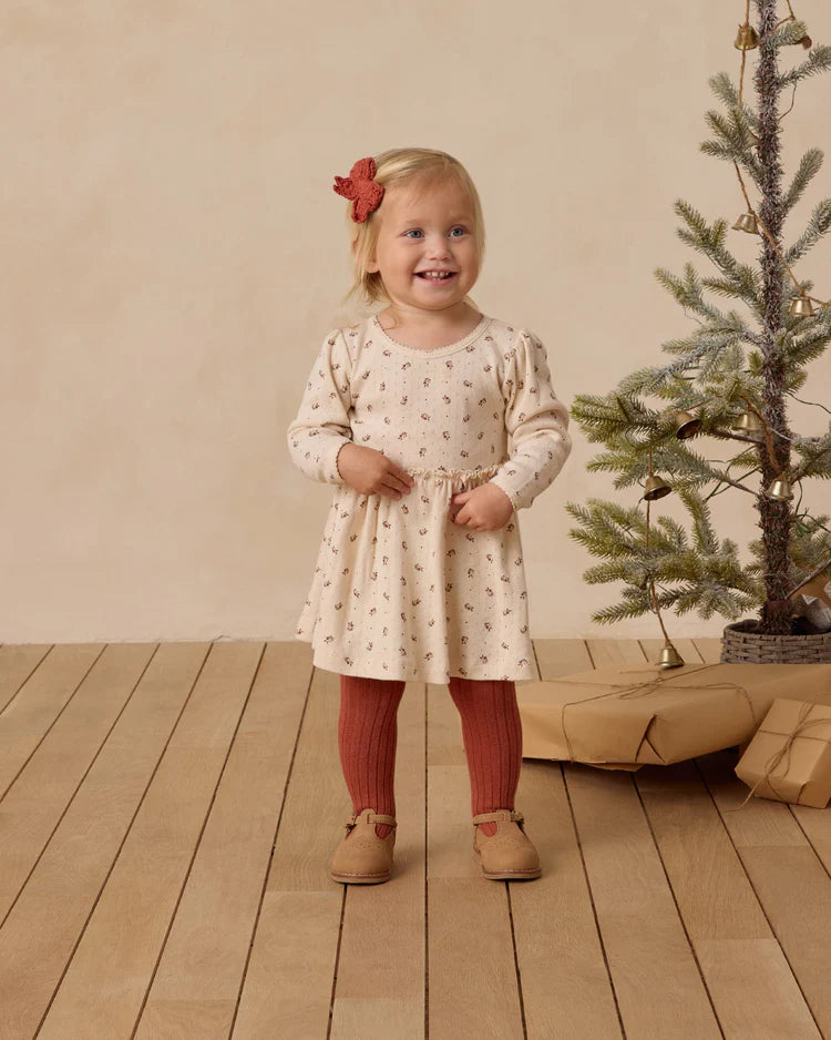 Rib knit footed tights made from soft, stretchy fabric to keep little ones warm. Layer under one of our dresses for an extra sweet look.