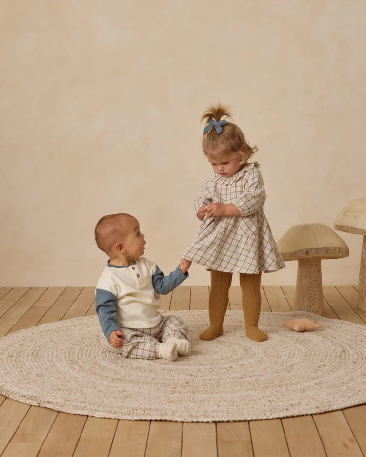 Rib knit footed tights made from soft, stretchy fabric to keep little ones warm. Layer under one of our dresses for an extra sweet look.