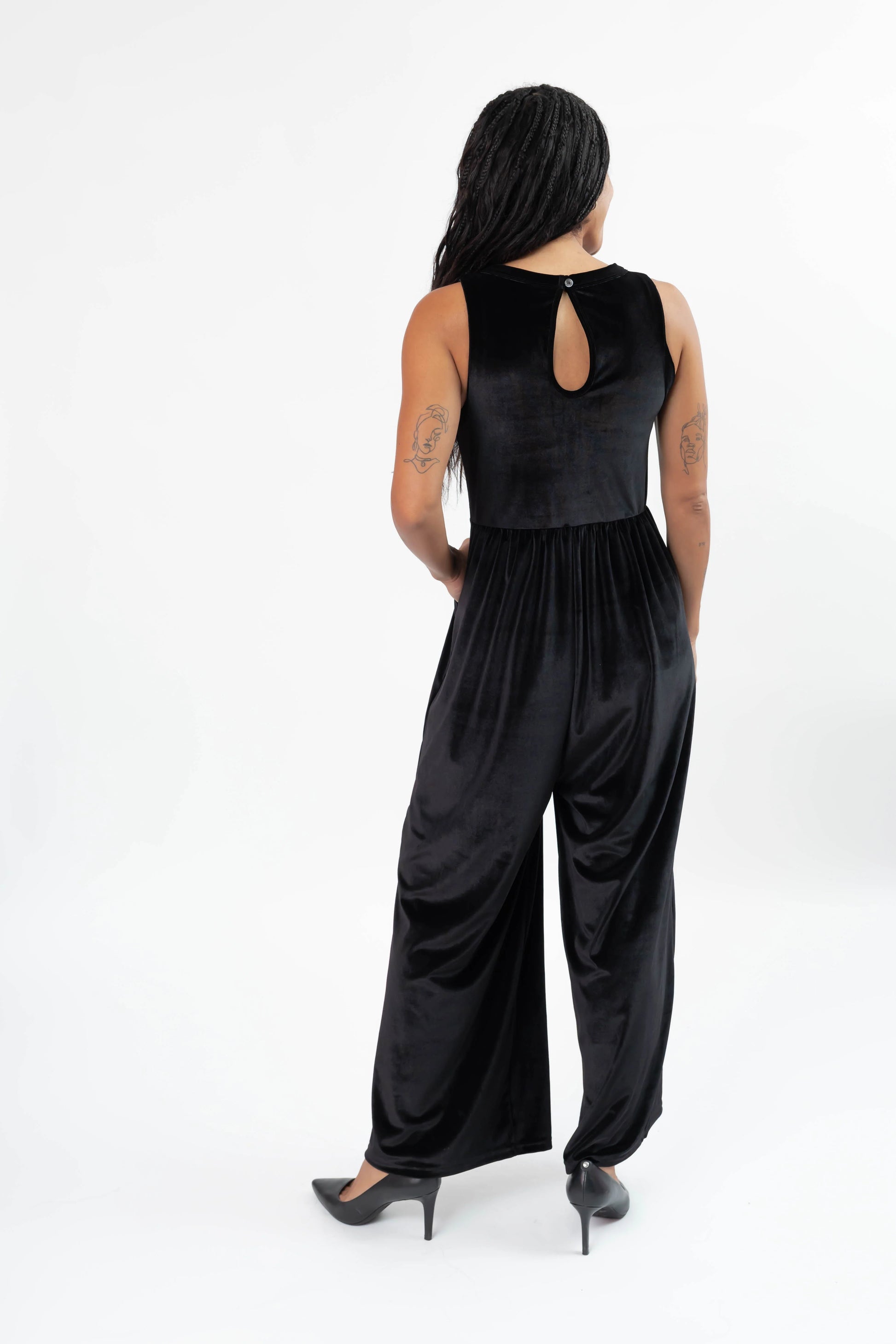 Comfortable, yet chic = the perfect holiday party look! Made in a soft, luxurious velvet, the Gina Velvet Romper features a sleeveless tank top, button keyhole detail at the back, curved waist seam and a slightly cropped leg. Feel festive and fabulous in this darling silhouette!