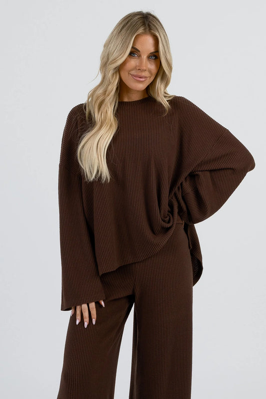 Foxy Kind Yacht Club Pant Set Long Sleeve || Cocoa